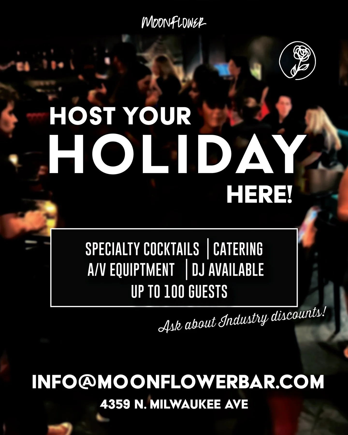 Whether it’s for your team, friends, or the whole crew, Moonflower has you covered with specialty cocktails, catering, A/V equipment, a DJ, and space for up to 100 guests.