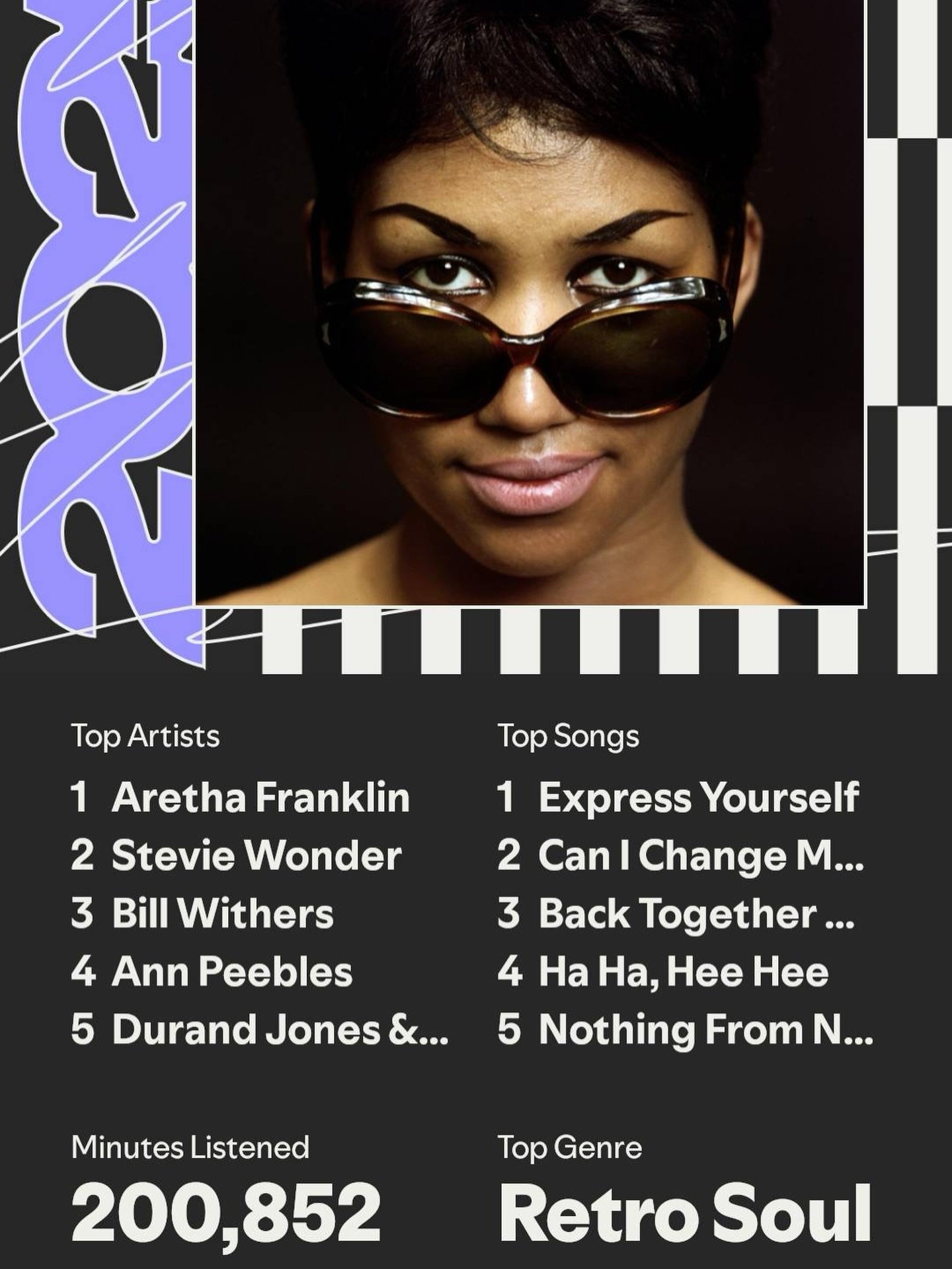 Fun fact: for the first time ever, Stevie Wonder didn’t take the top spot. This year it’s all Aretha!πŸ₯‡